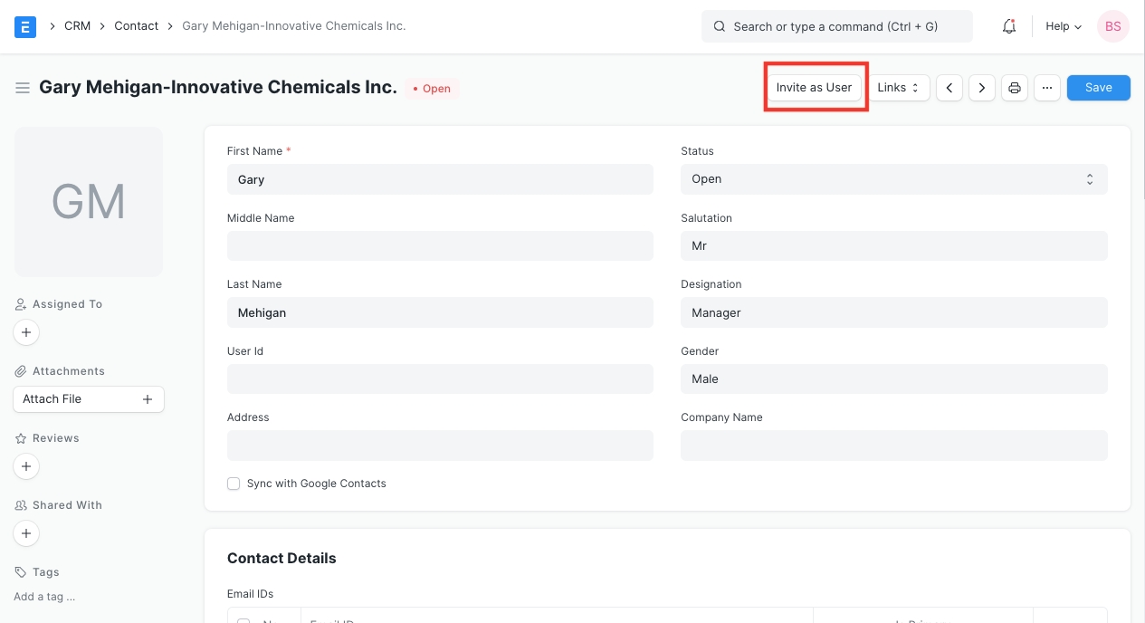 Bạn có thể cho phép người liên hệ của khách hàng và nhà cung cấp đăng nhập vào hệ thống ERPNext của mình và xem dữ liệu liên quan đến họ. Kiểm tra Cổng thông tin khách hàng để biết thêm chi tiết về điều này. Bạn có thể gửi lời mời qua email đến một liên hệ bằng cách nhấp vào nút 'Mời làm người dùng'.