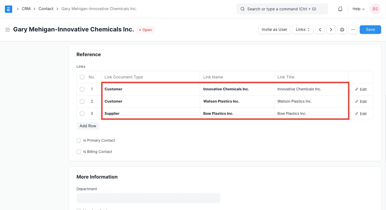 Một liên hệ có thể được liên kết với nhiều khách hàng hoặc nhiều nhà cung cấp.
