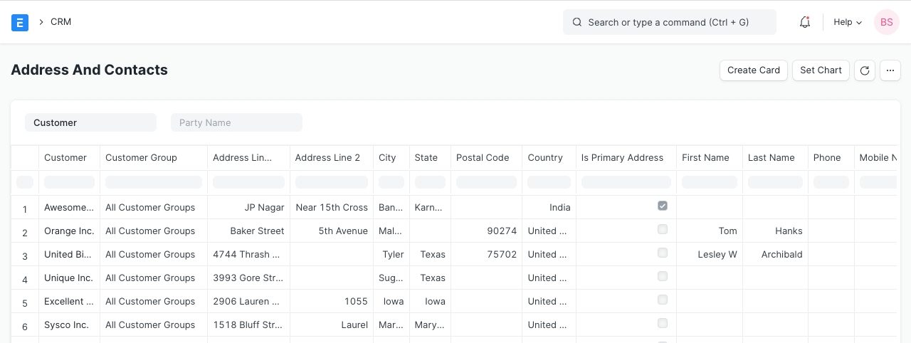 Chọn Khách hàng trong 'Loại nhóm', báo cáo sẽ hiển thị địa chỉ và chi tiết liên hệ của tất cả khách hàng.