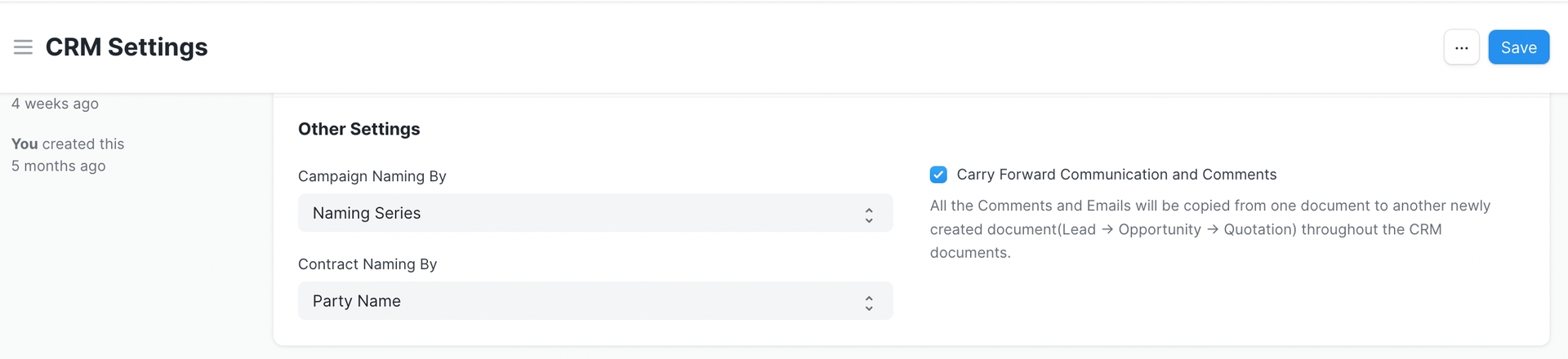 Nếu tính năng này được bật, Khi chuyển đổi Khách hàng tiềm năng thành Cơ hội và Cơ hội thành Báo giá, hệ thống sẽ tự động sao chép email và nhận xét từ tài liệu nguồn.