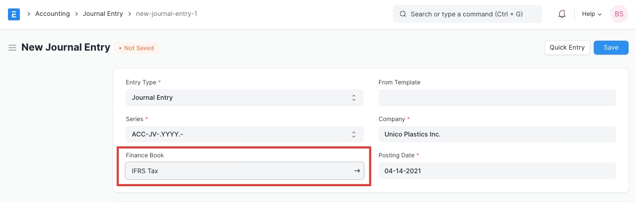 Sổ Tài chính không phải là một thiết lập bắt buộc. Nhưng nếu bạn chọn tạo nhiều Sổ Tài chính, thì bạn có thể thực hiện các mục nhập đối với một Sổ Tài chính cụ thể bằng cách chọn sách đó trong Mục nhập Nhật ký. Nếu trường Sổ tài chính trống trong Mục nhập Nhật ký có nghĩa là mục nhập sẽ có sẵn trong tất cả các sách tài chính.