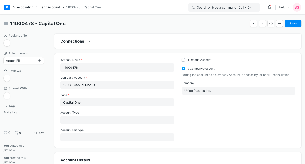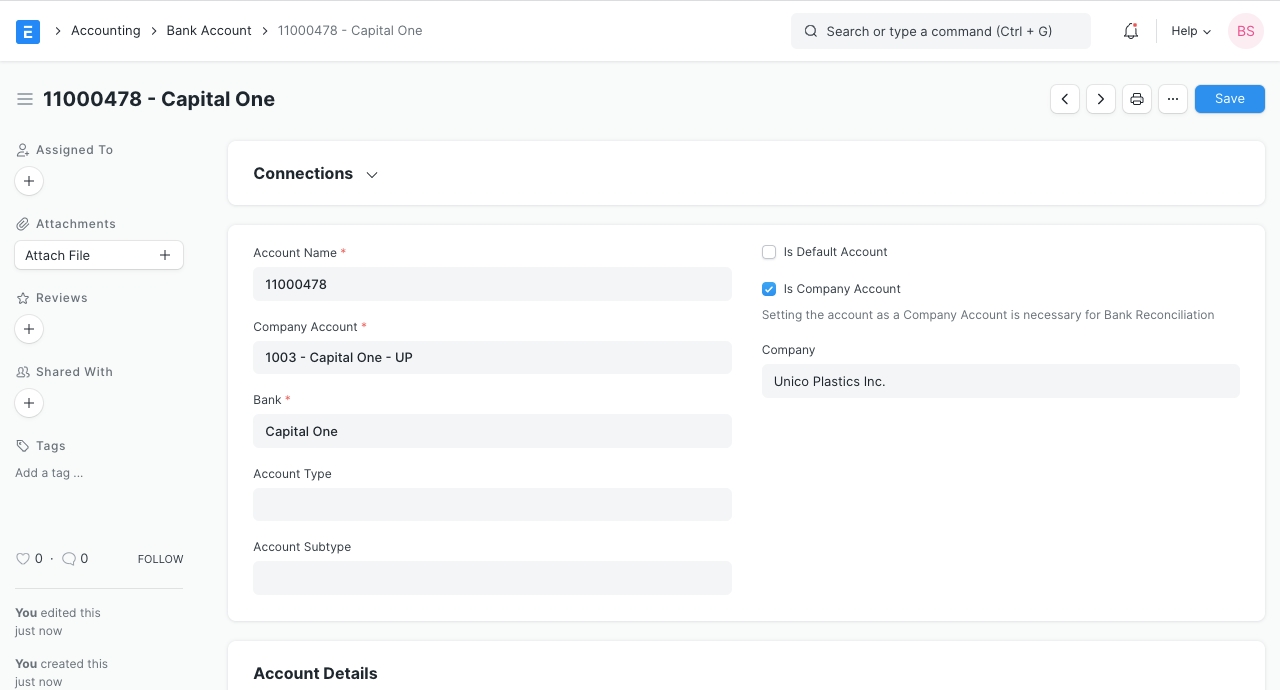 Trong ERPNext, Tài khoản ngân hàng có thể được tạo cho Công ty cũng như các bên khác như Khách hàng, Nhà cung cấp, v.v. Làm điều này cho phép bạn ghi lại tất cả các giao dịch ngân hàng một cách chính xác để tính chính xác.
