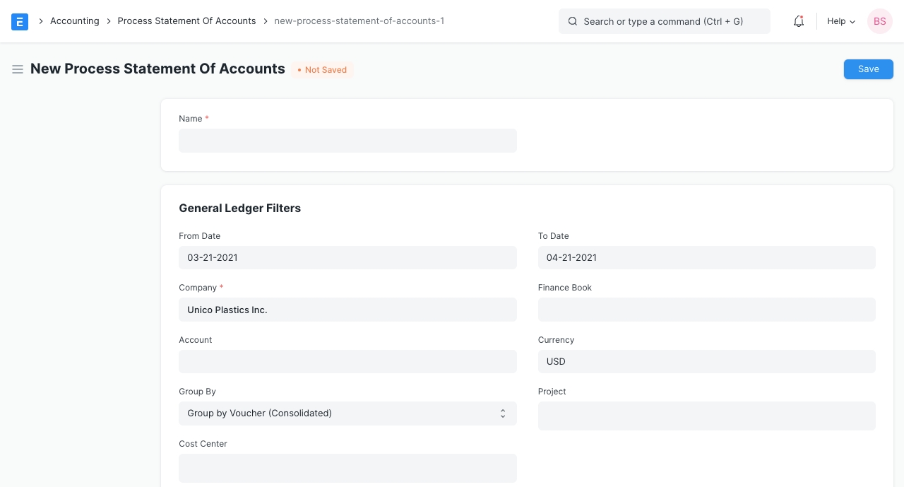 Để truy cập danh sách Process Statement Of Accounts , bạn có thể tìm kiếm trong thanh điều hướng hoặc truy cập:
