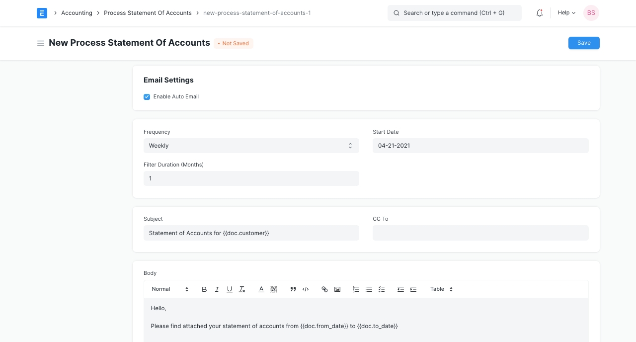 Quy trình Sao kê Tài khoản là một công cụ giúp bạn gửi Báo cáo Tài khoản (Báo cáo Sổ cái chung) và Báo cáo Lão hóa (Tóm tắt Khoản phải thu) dưới dạng PDF cho khách hàng của bạn hàng loạt qua email theo cách thủ công hoặc tự động theo định kỳ.