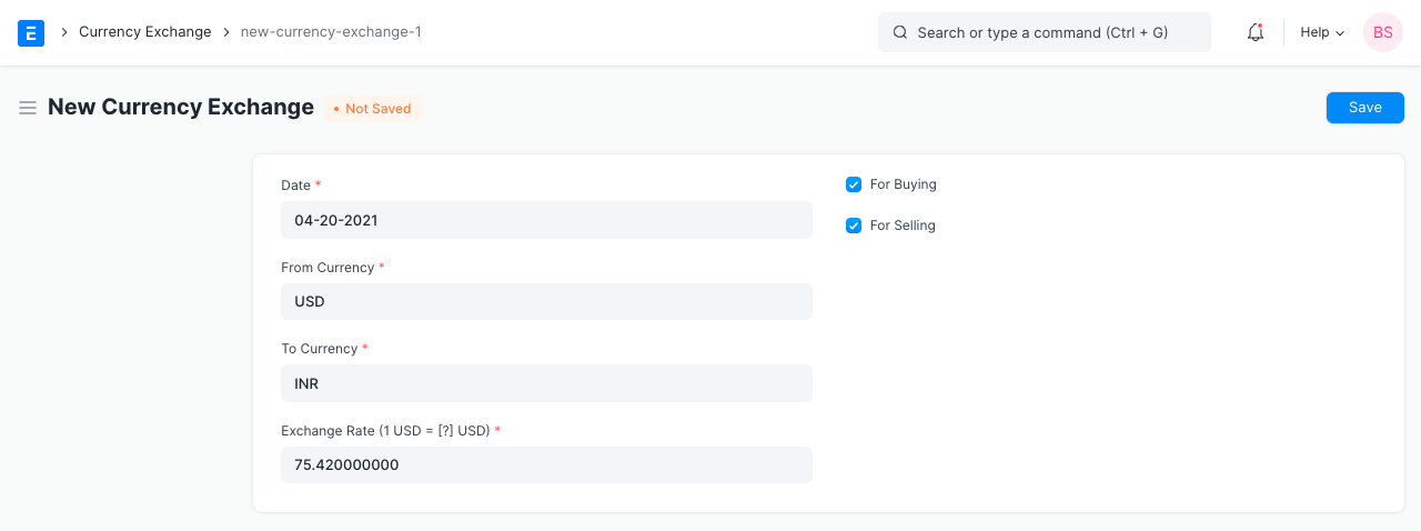 Biểu mẫu Trao đổi tiền tệ trong ERPNext lưu trữ tỷ giá hối đoái do Người dùng lưu trữ theo cách thủ công. Theo mặc định, ERPNext tự động tìm nạp tỷ giá hối đoái hiện tại cho các loại tiền tệ theo thị trường. Tuy nhiên, bạn có thể lưu trữ tỷ giá hối đoái cố định và sử dụng chúng. Bạn cần bật 'Cho phép tỷ giá hối đoái cũ' trong Cài đặt tài khoản để sử dụng tỷ giá hối đoái được lưu trữ trong biểu mẫu Tỷ giá hối đoái.
