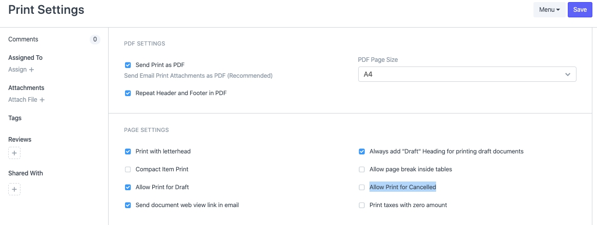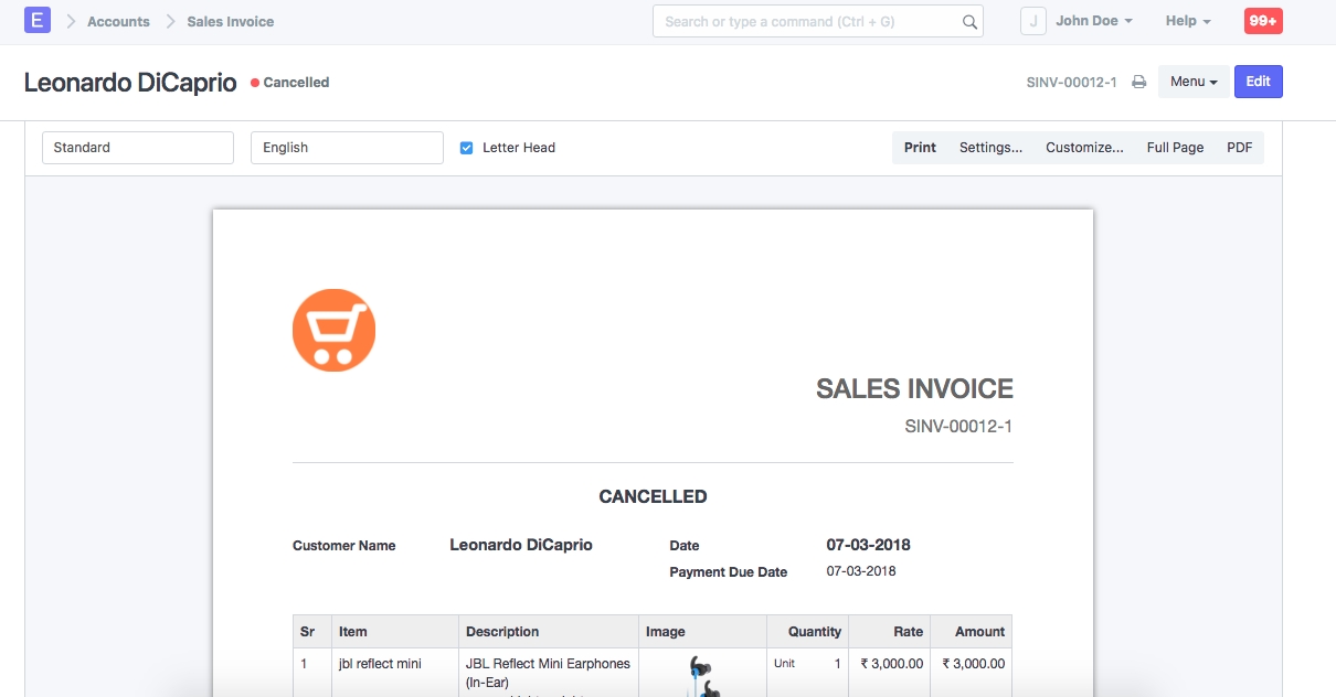 Làm cách nào để in Hóa đơn đã hủy? Trong Cài đặt In , có một hộp kiểm cho phép in các Hóa đơn đã hủy.