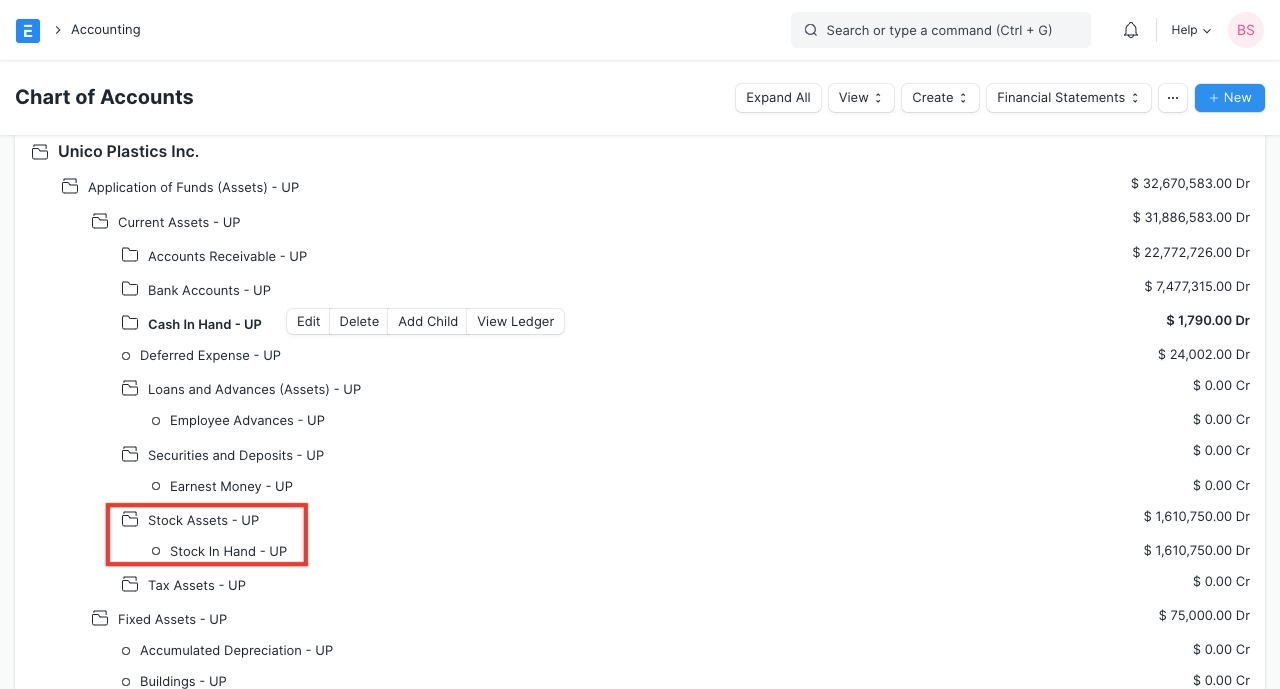 Biểu đồ Tài khoản> Tài sản> Tài sản Hiện tại> Tài sản Cổ phiếu> Có Trong tay.