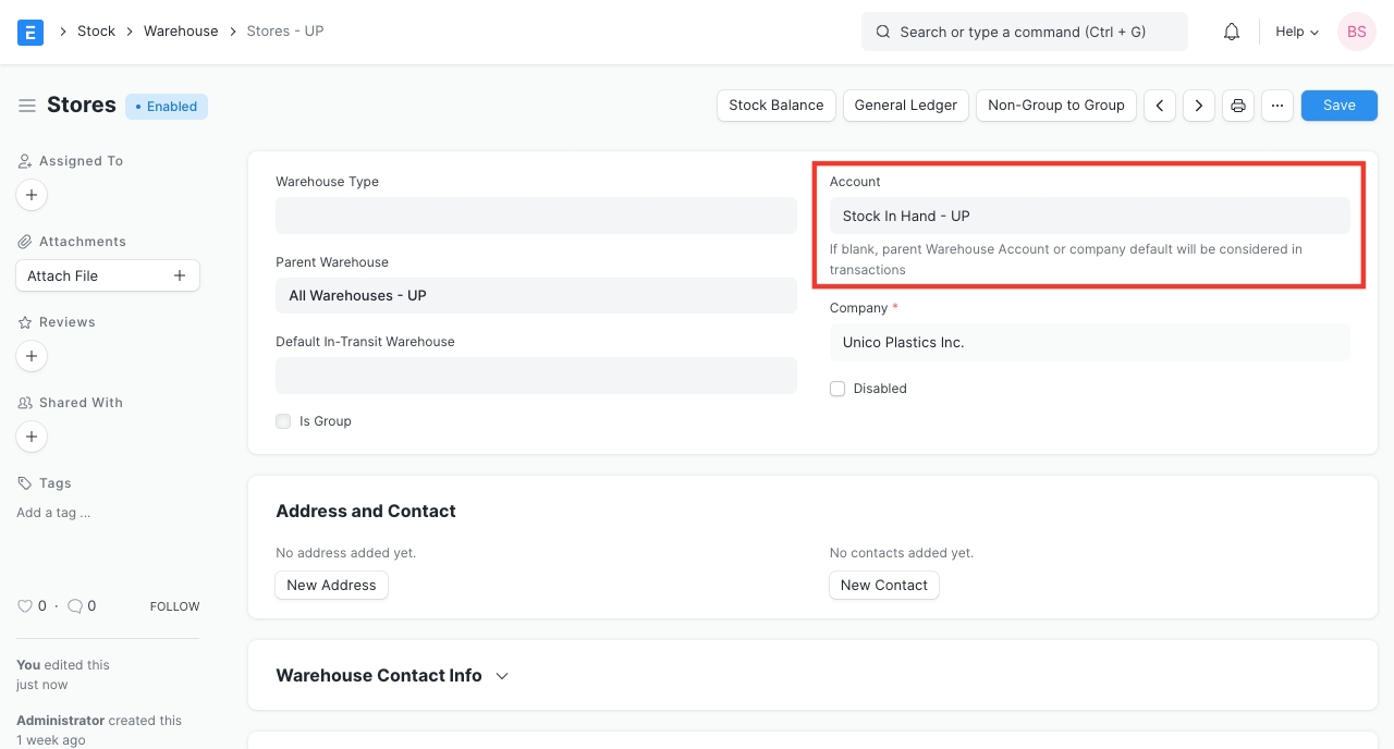 Nếu trường Tài khoản trống trong kho, thì Tài khoản được đề cập trong kho chính của kho đó được coi là. Nếu không thể xác định được Tài khoản bằng cách theo dõi phân cấp, thì Tài khoản hàng tồn kho mặc định được đề cập trong hồ sơ Công ty sẽ được xem xét.