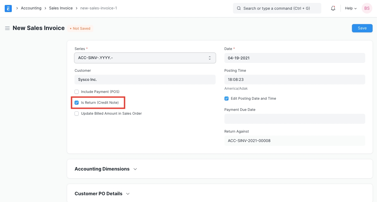 Trong trường hợp không có khoản thanh toán nào được thực hiện so với hóa đơn ban đầu, bạn chỉ có thể hủy Hóa đơn bán hàng. Tuy nhiên, nếu chỉ có 5 trong số 10 Mặt hàng được trả lại từ một hóa đơn, thì việc tạo Giấy báo Có sẽ hữu ích cho việc cập nhật sổ cái.