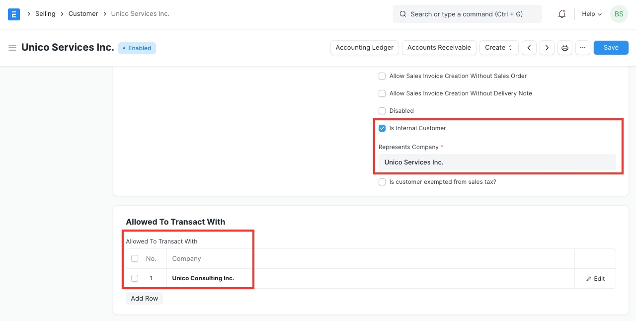 3. Bật hộp kiểm, Khách hàng nội bộ được hiển thị như sau: