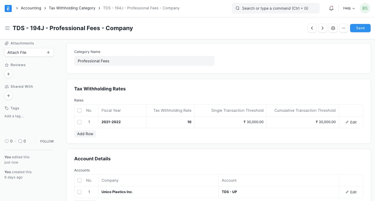 Nhấp vào Lưu. TDS sẽ được tự động áp dụng