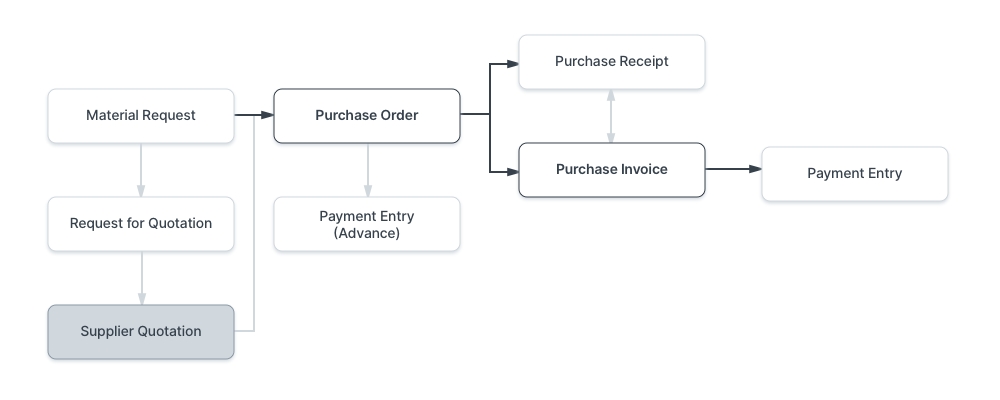 Các bản ghi sau có thể được tạo sau khi gửi Báo giá cho Nhà cung cấp:
