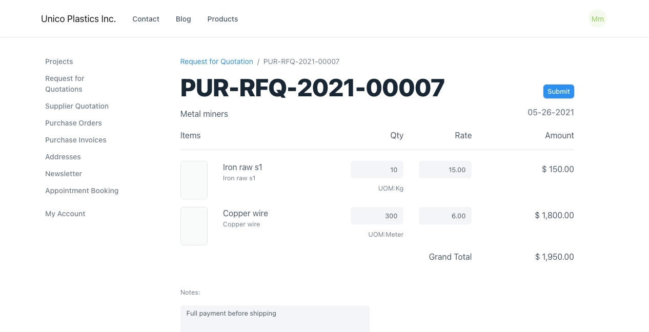 Bạn có thể in yêu cầu báo giá / đơn đặt hàng trên giấy tiêu đề của công ty. Biết thêm tại đây .
