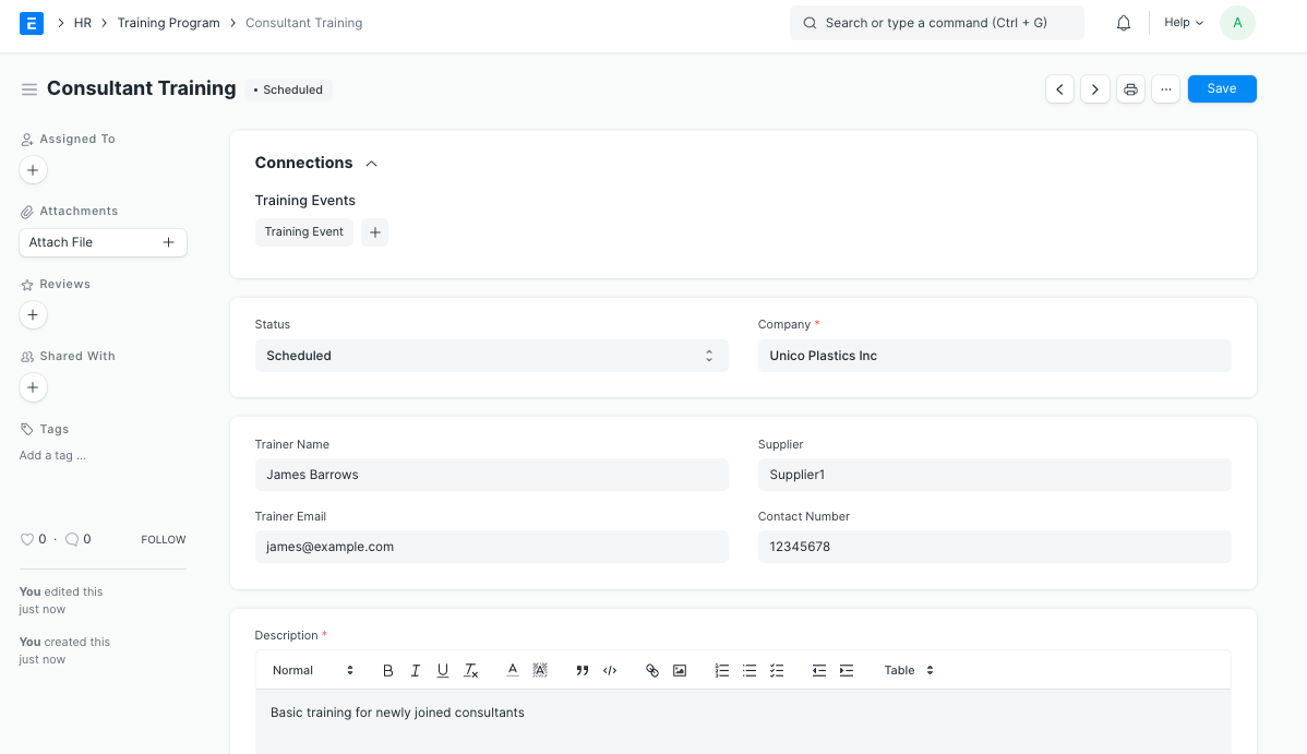 Sau khi Chương trình đào tạo được lưu, bạn có thể tạo Sự kiện đào tạo trong cùng một