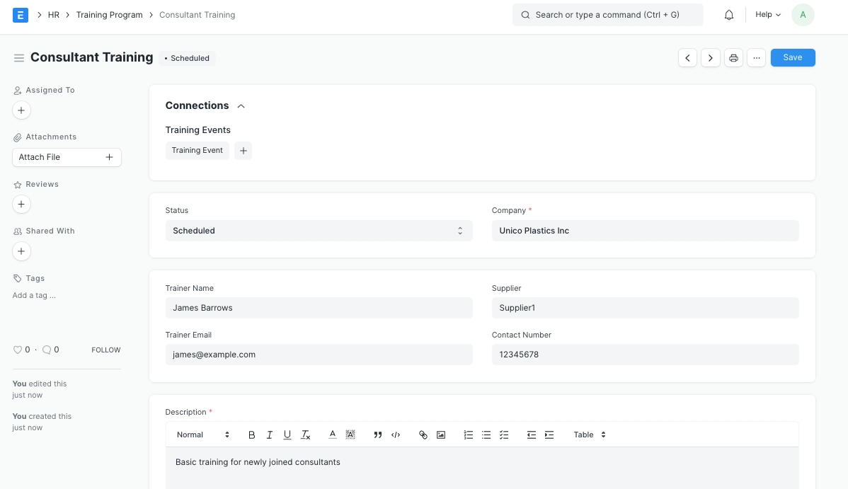 Trong ERPNext, bạn có thể tạo Chương trình đào tạo và lên lịch các Sự kiện đào tạo trong đó.