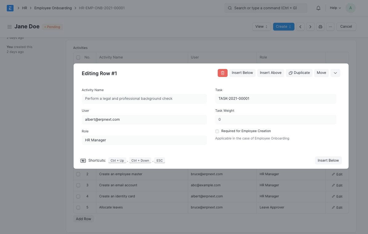 Trong quá trình tuyển dụng Nhân viên, có một số hoạt động tiêu chuẩn cần được thực hiện. Tính năng này giúp bạn duy trì thông thạo các hoạt động này và tạo một nhóm nhiệm vụ tại thời điểm tuyển dụng Nhân viên.