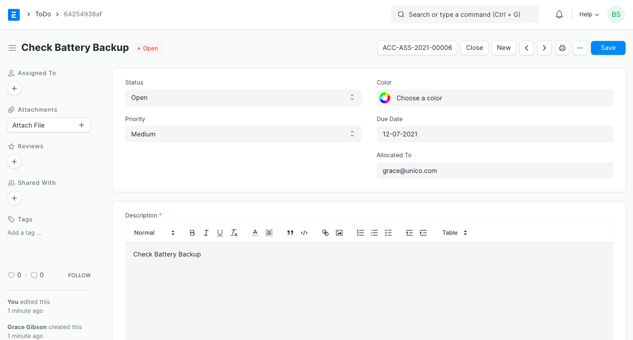Khi chỉ định việc bảo trì cho người dùng, nó sẽ xuất hiện trong danh sách Việc cần làm của người dùng.