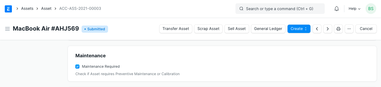 Để thực hiện bảo trì tài sản trong ERPNext: