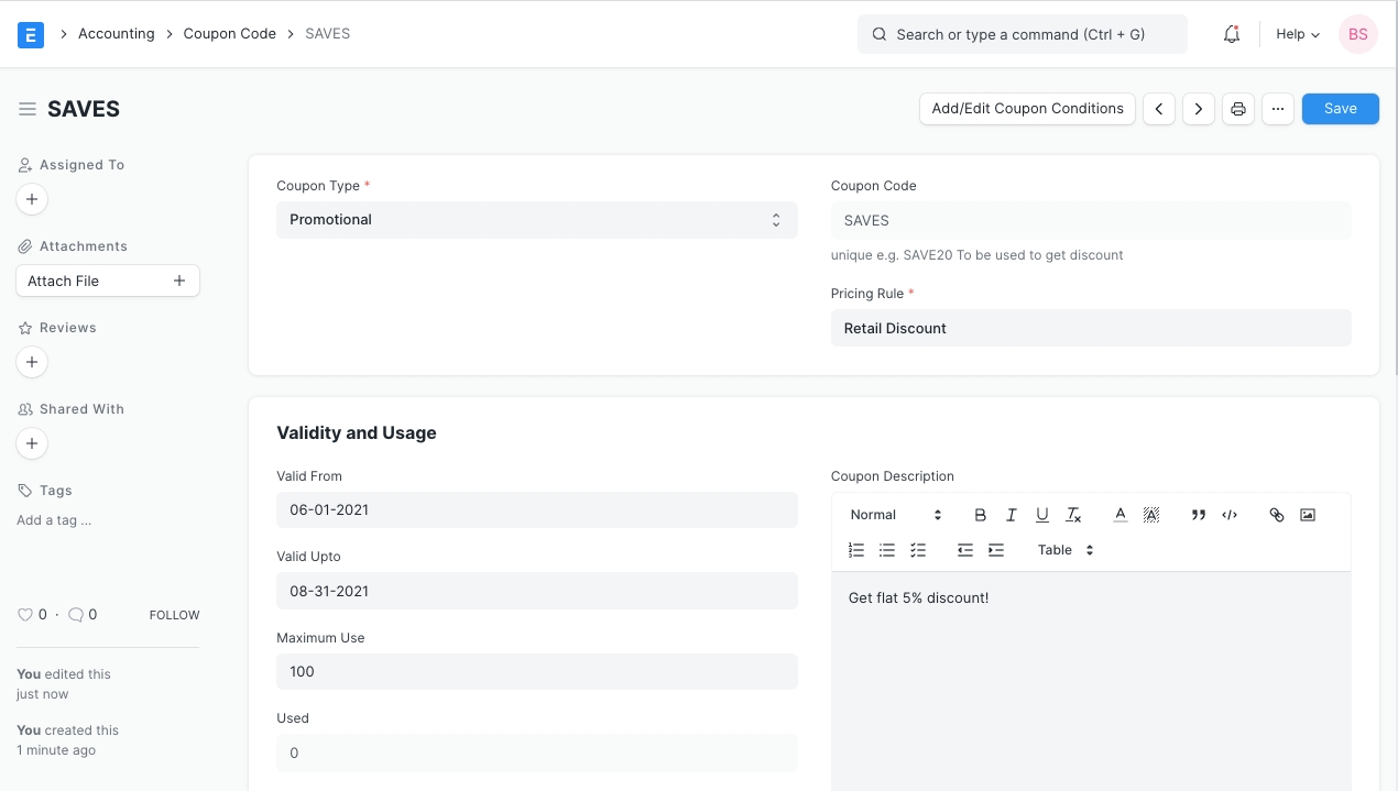 b) Give discount (based on Pricing Rule) on overall purchase i.e. Coupon codeĐể truy cập danh sách Mã phiếu giảm giá, hãy truy cập: