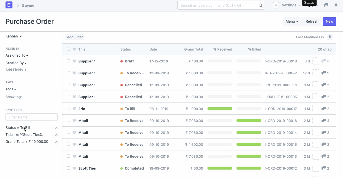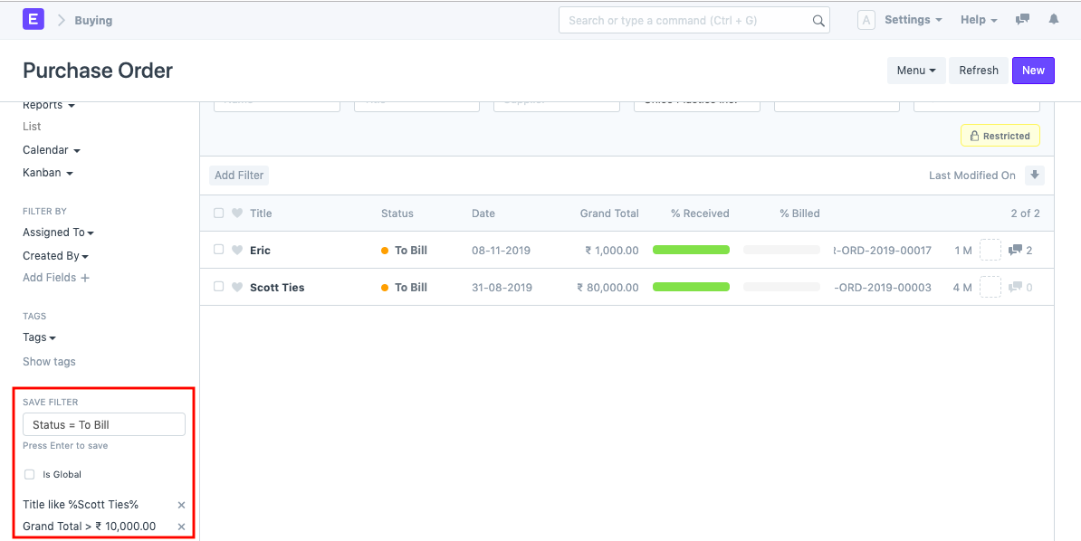 Trong trường hợp này, bạn có thể tạo bộ lọc tùy chỉnh cho nó và lưu điều kiện tương tự trong tùy chọn 'Bộ lọc lưu trữ' để bạn dễ dàng truy cập bộ lọc này mỗi khi bạn mở danh sách Đơn đặt hàng.