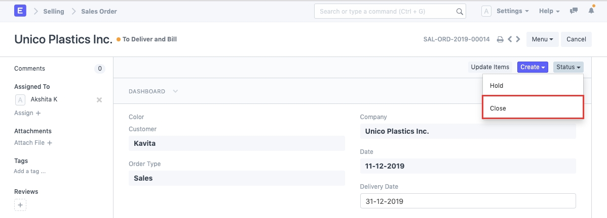 Khi nhiệm vụ được đặt là hoàn thành, Việc cần làm tương ứng sẽ đồng thời được cập nhật là 'Đã đóng'.