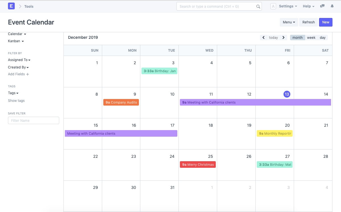 Lịch là một Công cụ giúp bạn tạo, chia sẻ và theo dõi các sự kiện trong tài khoản CRM của mình.