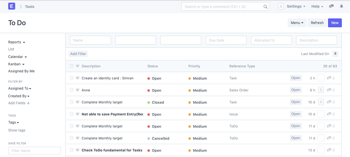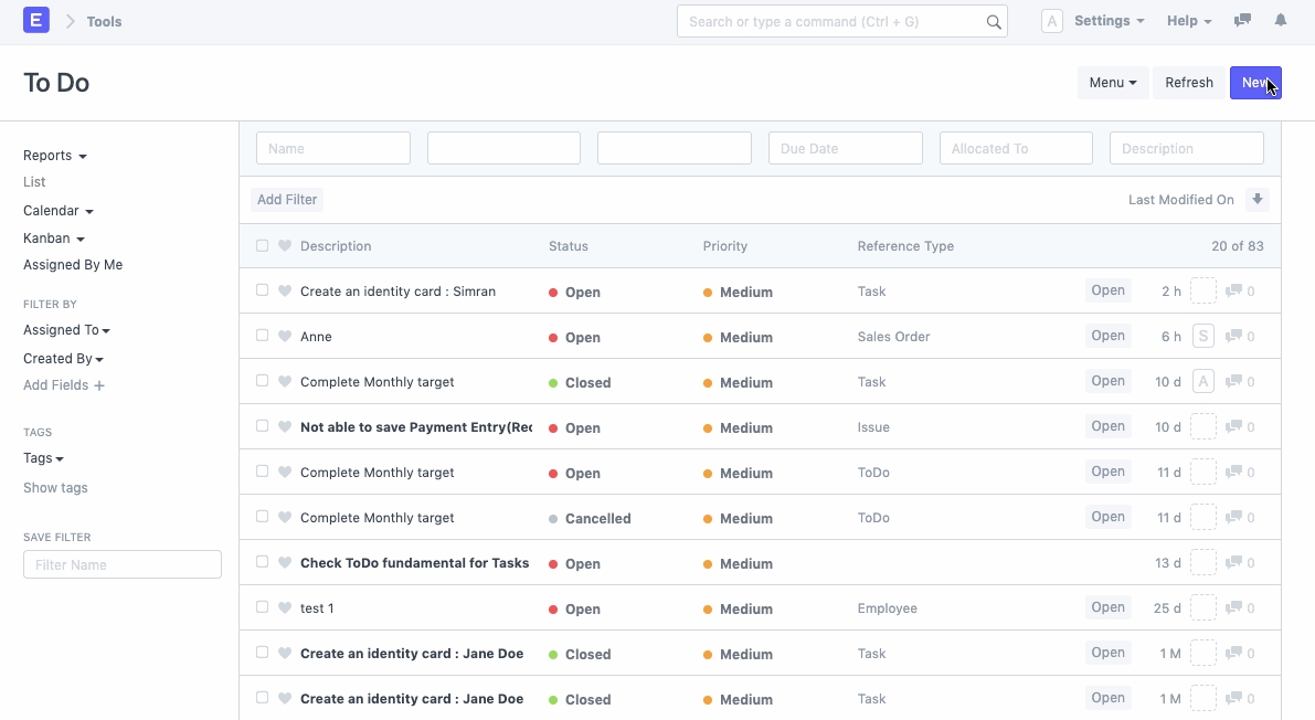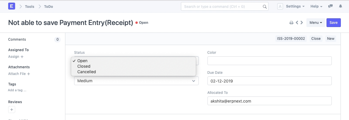 Trạng thái : Bạn có thể xác định trạng thái của Việc cần làm. Trong khi tạo, trạng thái mặc định của Việc cần làm sẽ là 'Mở'. Người dùng có thể thay đổi nó thành 'Đã đóng' khi hoàn thành nhiệm vụ.