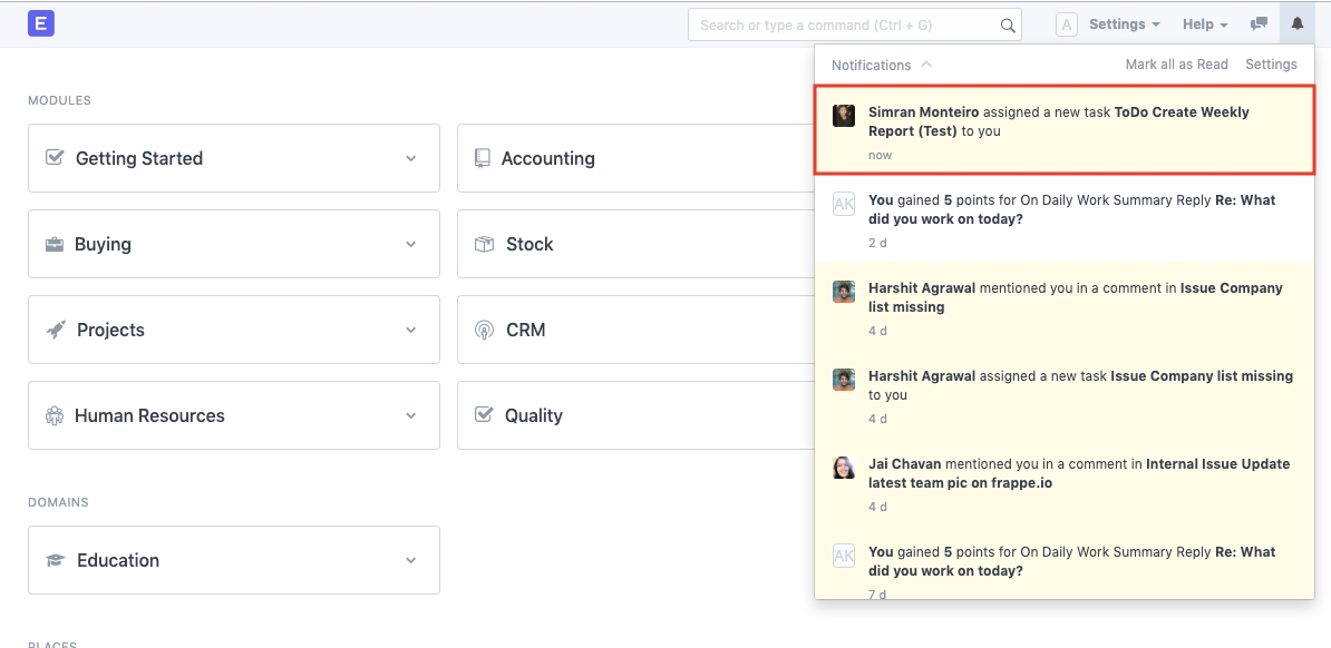 Sau khi nhiệm vụ được tạo, nhân viên thực hiện sẽ nhận được thông báo cho Việc cần làm của mình.