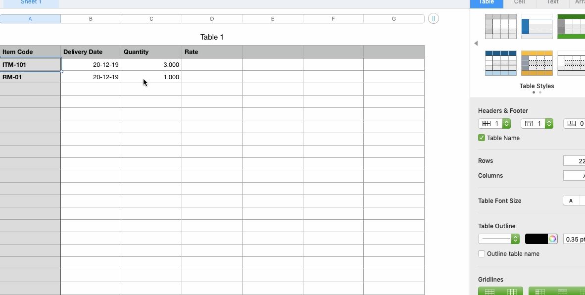 Giả sử, bạn có một danh sách các mặt hàng được lưu trong một trang tính Excel và bạn cần sao chép danh sách đó vào Bảng Con 'Mặt hàng' trong Đơn đặt hàng bán hàng.