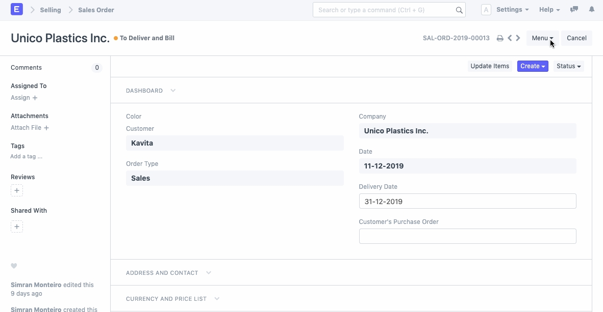 Vì Đơn đặt hàng bán hàng mới sẽ có tất cả các chi tiết giống với Đơn đặt hàng bán hàng ban đầu, nhà cung cấp có thể chỉ cần mở đơn hàng gốc và 'Nhân bản' đơn hàng. Các giá trị của tài liệu gốc sẽ được cập nhật giống như trong Đơn đặt hàng bán hàng mới. Bất kỳ thay đổi nào, nếu được yêu cầu có thể được thực hiện sau đó.