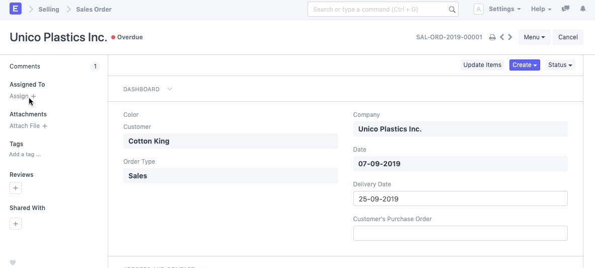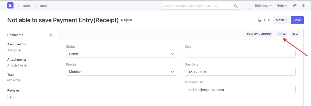 Mọi Tài liệu trong ERPNext đều có một tùy chọn được gọi là 'Gán cho' trong thanh bên. Sử dụng tùy chọn này, bất kỳ Tài liệu nào cũng có thể được gán cho người dùng. Người dùng sẽ được chỉ định một Việc cần làm đồng thời.