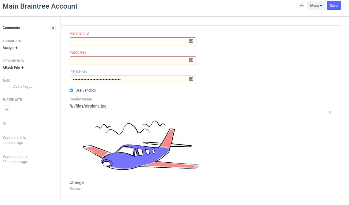 Để bật Braintree trong tài khoản ERPNext của mình, bạn cần định cấu hình các thông số sau:
