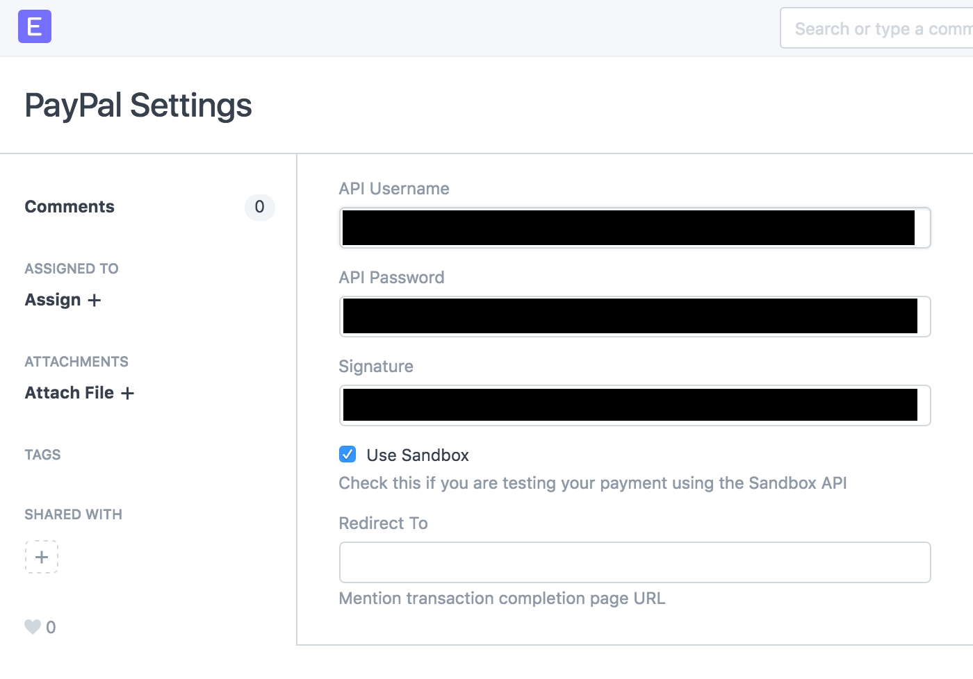 Để kích hoạt dịch vụ thanh toán PayPal, bạn cần định cấu hình các thông số như Tên người dùng API, Mật khẩu API và Chữ ký.