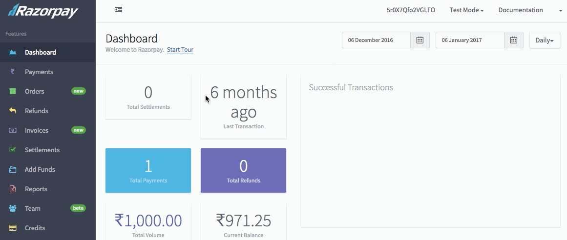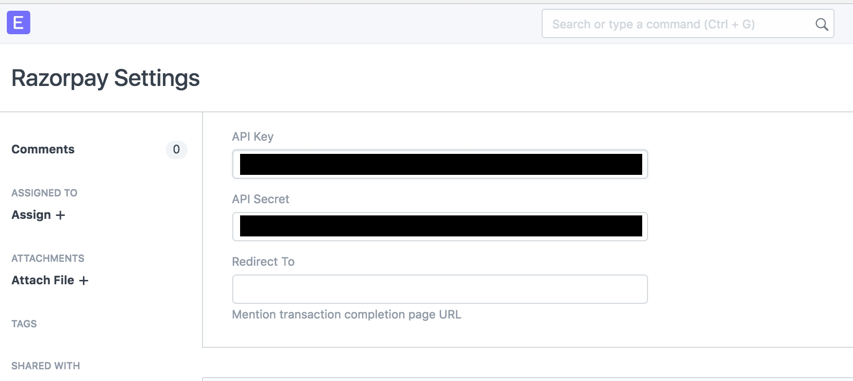 Explore > Integrations > RazorPay Settings
