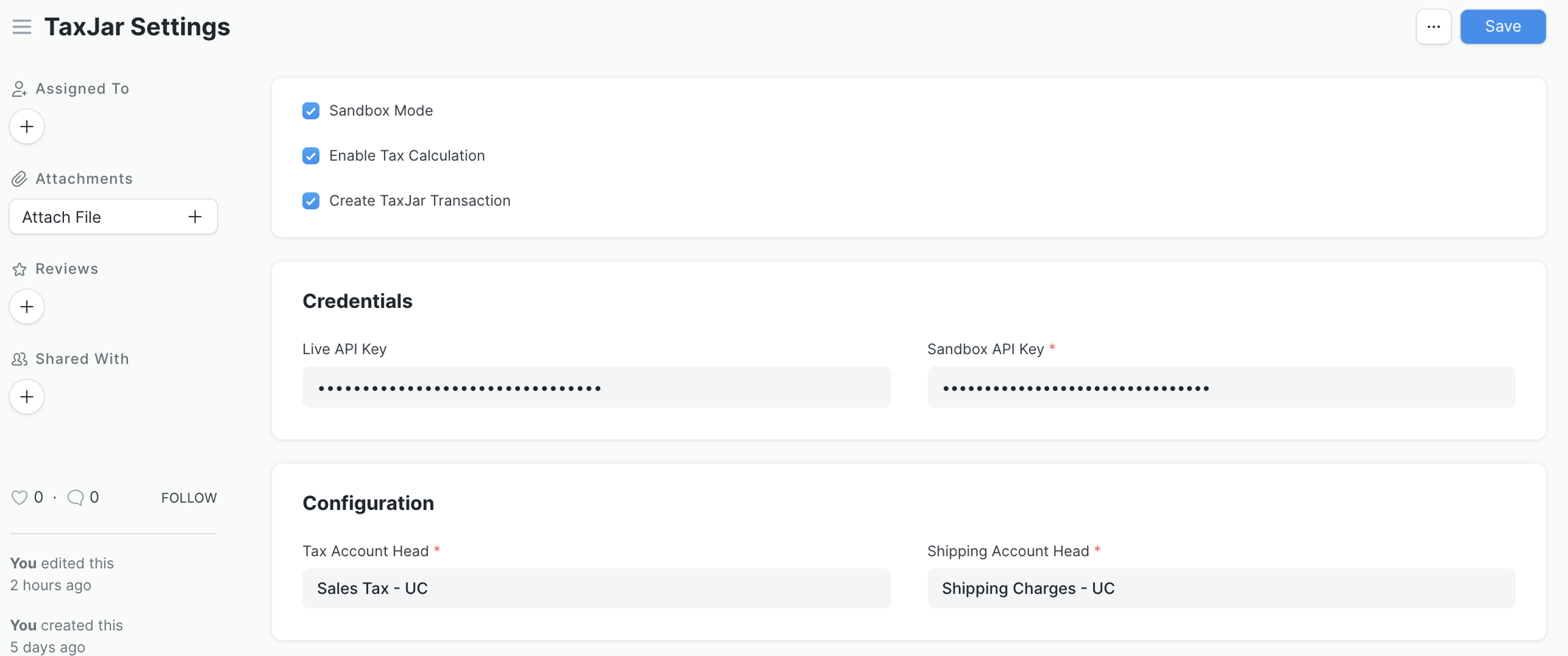 6. Bạn sẽ phải đặt hai đầu tài khoản cho Thuế và Vận chuyển, chọn các tài khoản theo yêu cầu và khi mọi thứ đã được định cấu hình, hãy nhấp vào lưu và bạn đã sẵn sàng!