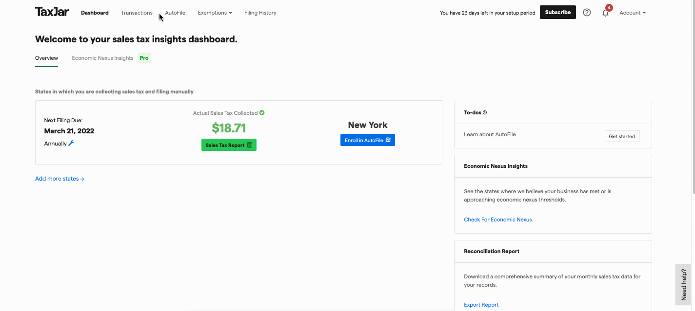 1. Trước tiên, hãy tạo một tài khoản Taxjararrow-up-right theo yêu cầu của bạn.
