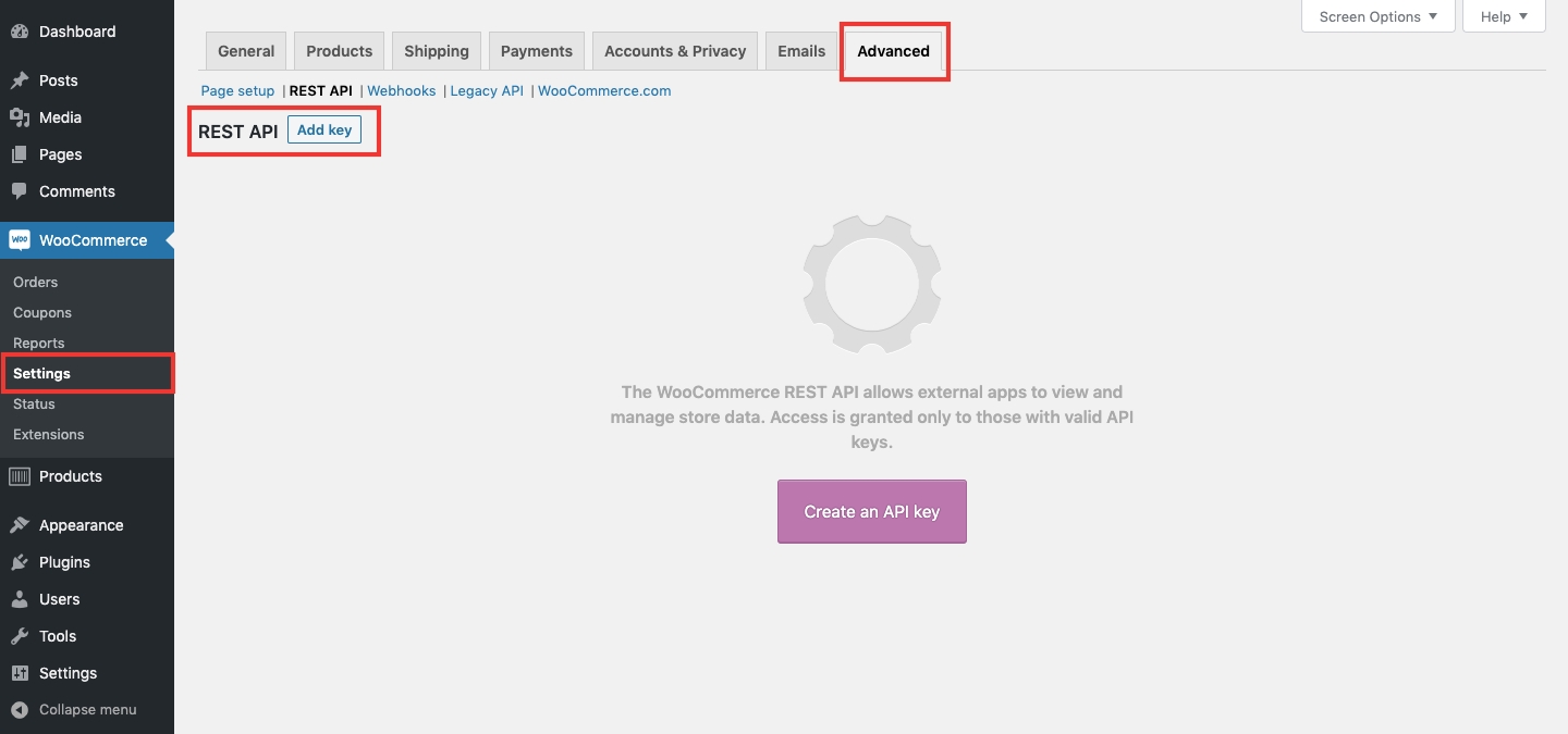 Khóa API Woocommerce