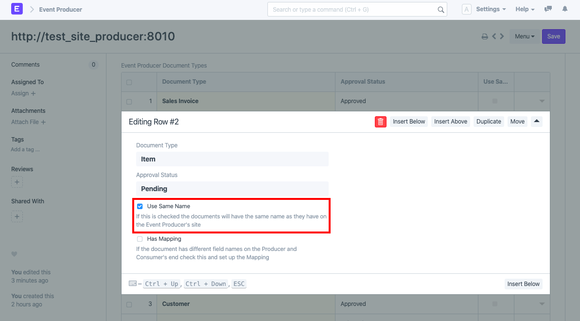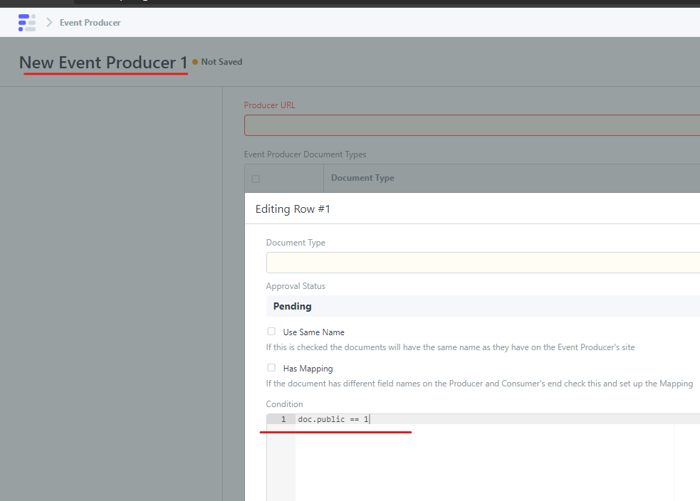 Lưu ý : Đối với Loại tài liệu có chuỗi đặt tên, bạn nên bỏ chọn hộp kiểm 'Sử dụng cùng tên' để tránh xung đột đặt tên. Nếu điều này không được chọn, Tài liệu được tạo bằng cách tuân theo các quy ước đặt tên trên trang web hiện tại và các trường tùy chỉnh 'Tên trang web từ xa' và 'Tên tài liệu từ xa' được đặt trong tài liệu được đồng bộ hóa để lưu trữ URL trang web Event Producer và tên tài liệu trên trang web từ xa tương ứng.