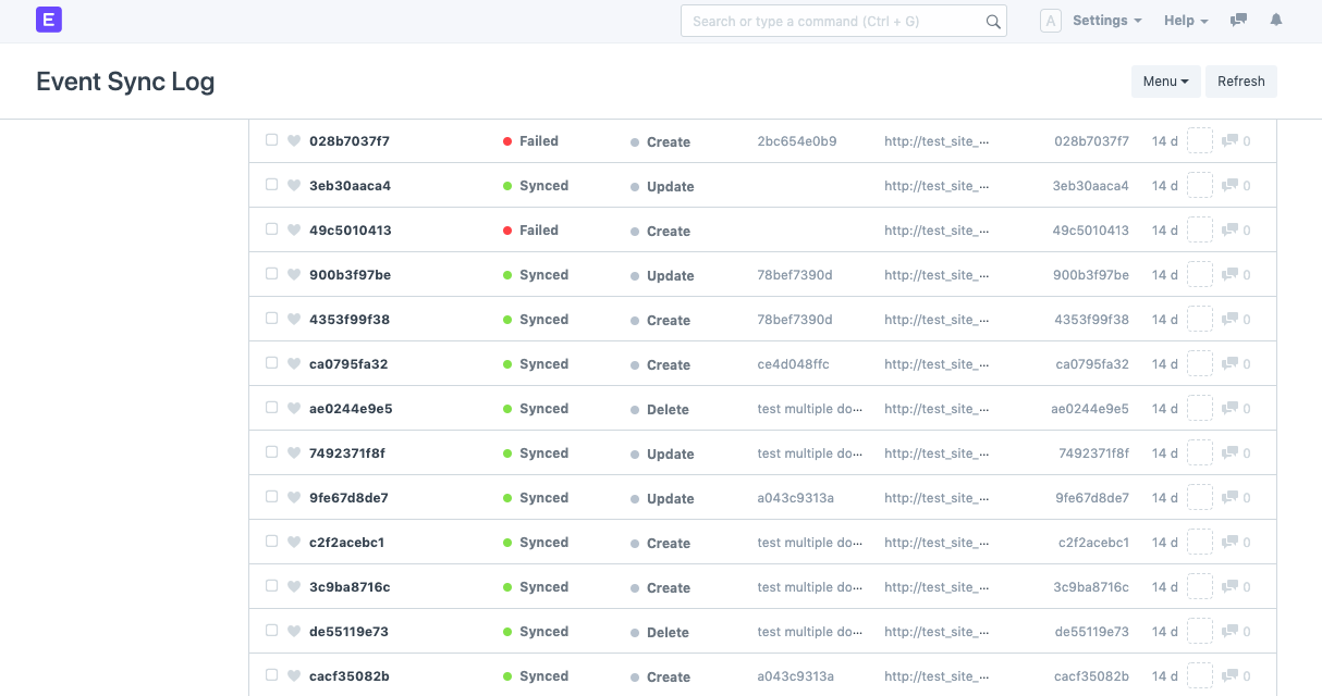 Giống như Nhật ký cập nhật, Nhật ký đồng bộ hóa sự kiện ghi lại mọi tài liệu được đồng bộ hóa từ Nhà sản xuất sự kiện trên trang Người tiêu dùng sự kiện. Để xem Nhật ký đồng bộ hóa sự kiện: