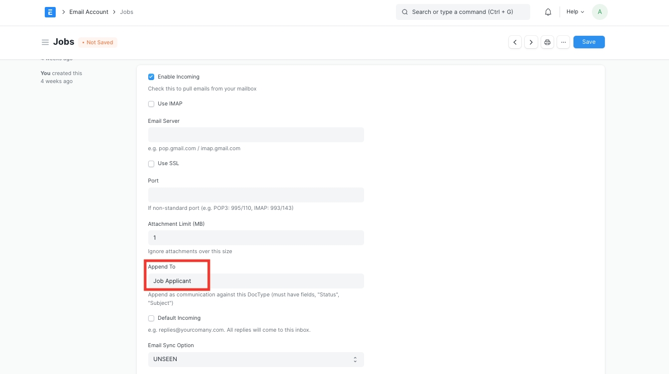 Bạn có thể liên kết Đơn xin việc với tài khoản Email. Giả sử bạn liên kết Đơn xin việc với một email [email protected], hệ thống sẽ tạo một Ứng viên mới cho mỗi email nhận được trên hộp thư.