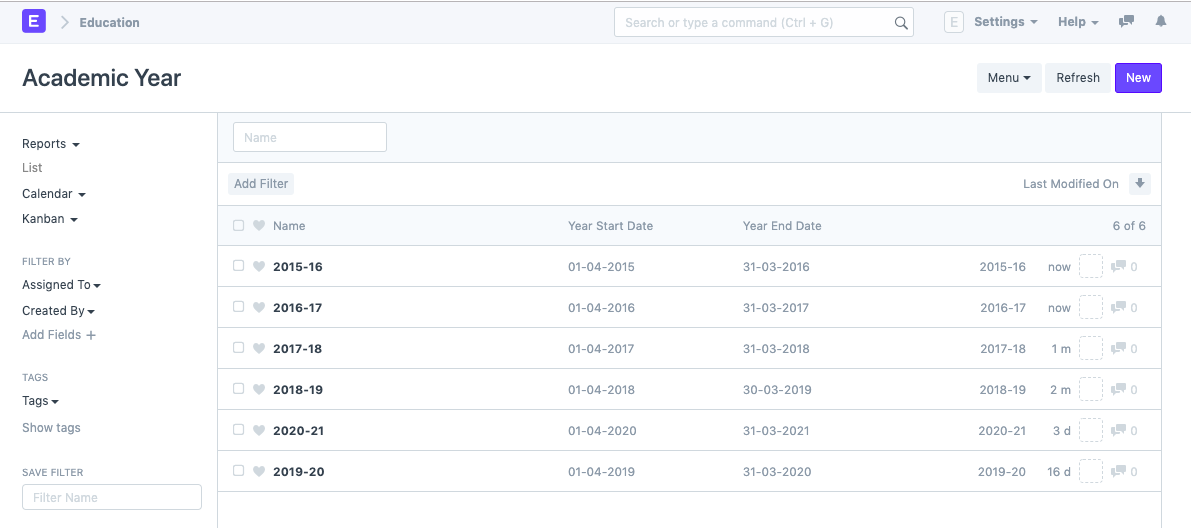 Mẫu thuật ngữ Học thuật trong ERPNext cho phép bạn tạo các thuật ngữ học thuật trong một Năm học. Dựa trên thời khóa biểu, hãy nhập ngày bắt đầu và ngày kết thúc cho thời khóa biểu và tạo Học kỳ.