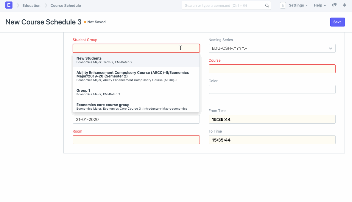 Sử dụng tính năng này, một bảng thời gian hoặc một hành trình có thể được tạo trong Viện, trong đó mỗi vị trí sẽ được lên lịch thông qua Lịch trình khóa học.