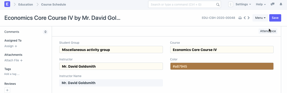 Để đánh dấu điểm danh cho một khóa học, hãy nhấp vào Điểm danh trong Lịch trình khóa học. Bạn sẽ được chuyển hướng đến một trang, trong đó tên của tất cả học sinh sẽ được liệt kê cùng với các hộp kiểm để đánh dấu sự chuyên cần. Bạn có thể kiểm tra Học sinh hiện tại và Đánh dấu điểm danh . Bạn cũng có thể Kiểm tra tất cả hoặc Bỏ chọn tất cả và đánh dấu điểm danh.