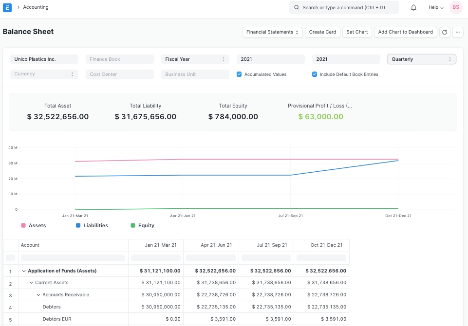 Bảng cân đối kế toán trong ERPNext giúp bạn linh hoạt hơn để phân tích tình hình tài chính của mình. Bạn có thể chạy báo cáo trong nhiều năm để so sánh các giá trị. Bạn có thể kiểm tra các giá trị cho một Sổ tài chính hoặc Trung tâm chi phí cụ thể. Bạn cũng có thể chọn bất kỳ loại tiền tệ nào khác để hiển thị số dư.
