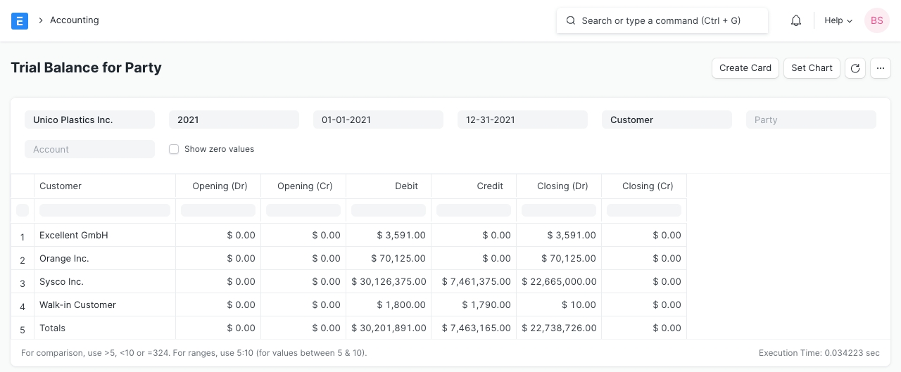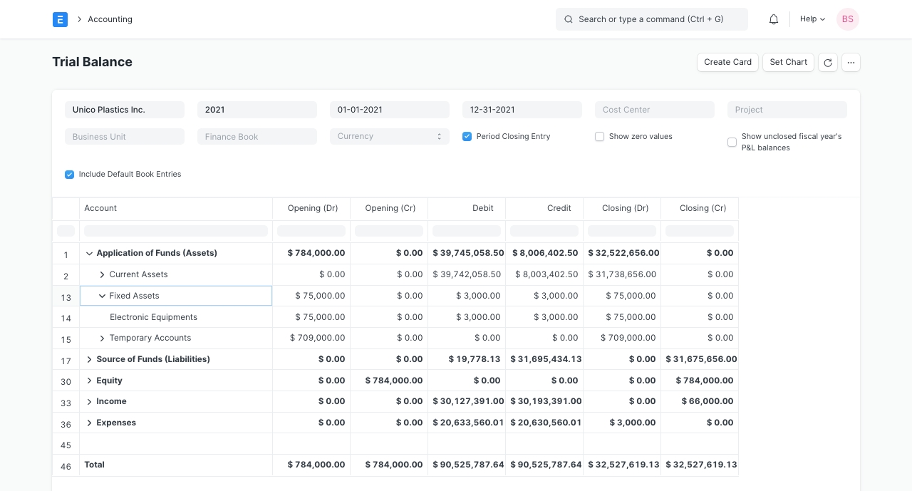 Cũng có một số tùy chọn khác để bao gồm hoặc loại trừ các Mục nhập Kết thúc Kỳ, hiển thị / ẩn các tài khoản có số dư bằng 0 và hiển thị số dư P&L (Thu nhập & Chi phí) của năm tài chính trước đó. Tất cả các số liệu trong báo cáo được thể hiện bằng đơn vị tiền tệ cơ bản của công ty.