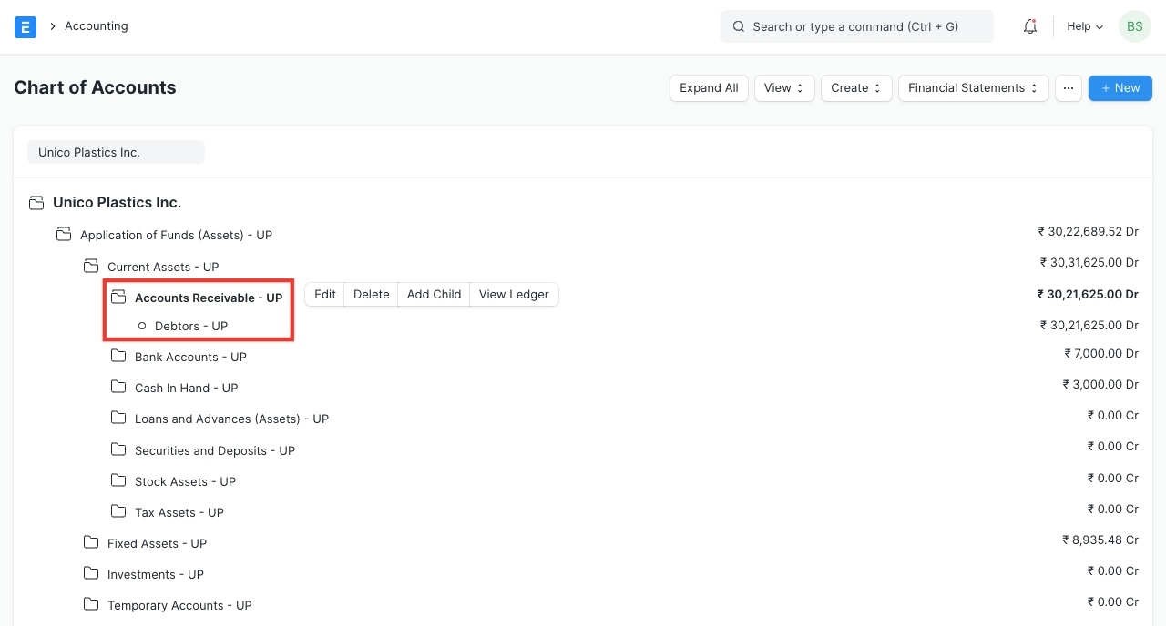 Cũng giống như Bên Nợ, để theo dõi các khoản phải trả, tài khoản mặc định được gọi là Bên Có được tạo trong Tài khoản Phải trả.
