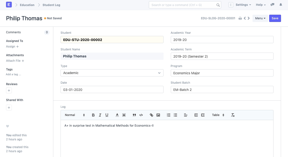 • Nhật ký : Trường này sẽ có ghi chú của bạn về nhật ký cho học sinh.